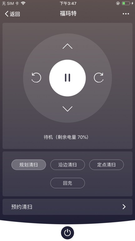 福玛特智能扫地机器人app最新版能够在手机上便捷的控制扫地机器人,绑定以后,就能在手机上设定清扫程序了,提供划区清扫、规划清扫、指哪扫哪等多种清扫模式,支持预约,在扫的过程中还能查看详细的清扫时间以及机器人的剩余电量。