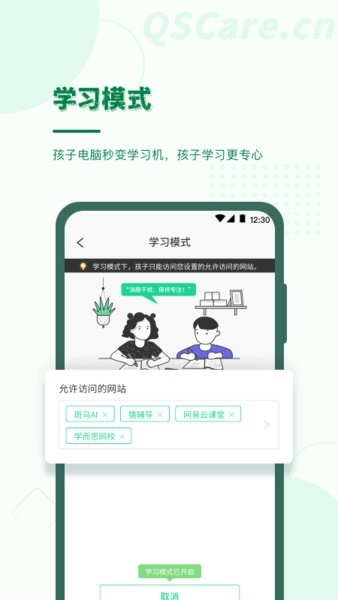 您可以对孩子电脑开启学习模式:孩子仅能浏览您勾选的网站,孩子学习更专心