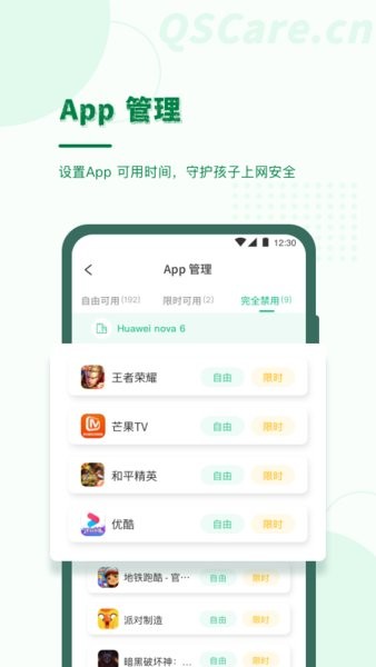 可以远程控制孩子上网时间的防沉迷app。家长用户安装注册后可以设置孩子上网时间,远程查看上网行为记录,还可以开启或禁用相关应用权限,有效保障孩子能健康、合理上网。