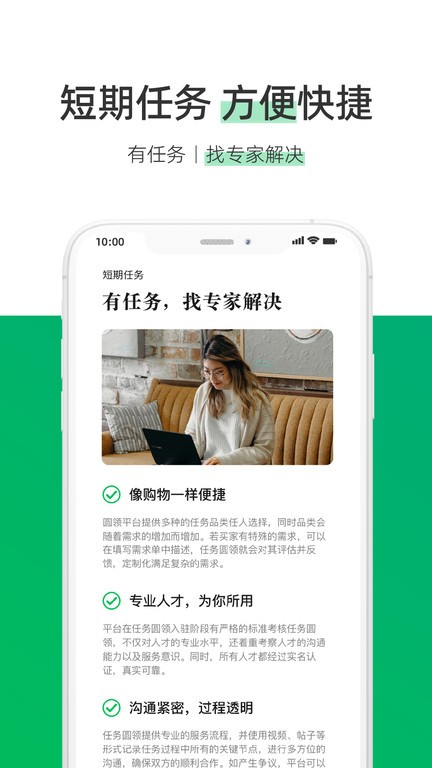 平台还提供优质的保障服务,所有人才都经过严格筛选,确保质量。像买东西一样方便,随时可以根据需求定制化选择。沟通透明,记录节点,有争议还能仲裁,这点很安心。付款也是月结制,企业压力小很多。