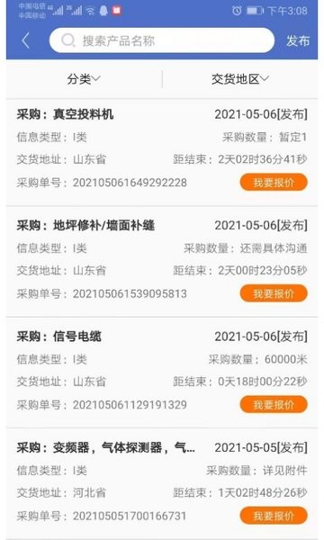3.进入“采购信息”页面后,您可以进行浏览,还可以在【分类】选择栏里面搜索您供应的产品信息进行精确查找,然后点击【我要报价】。