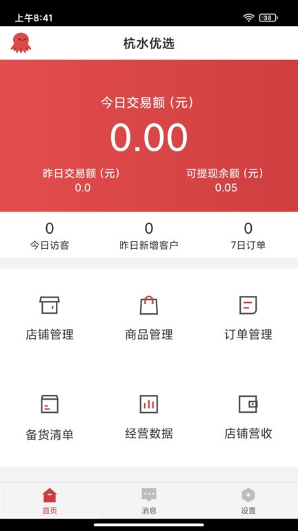 杭水优选商家端软件适合商家用户进行店铺、商品以及订单管理,能够查看每天的详细营业数据,各方面的统计数据非常之清晰,可以在线上架新产品,能够接收最新的客户下单通知信息并及时进行处理。