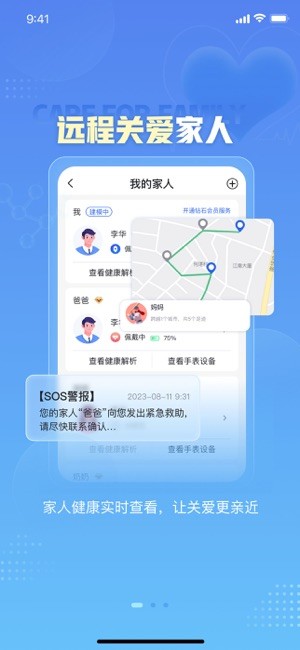 用户可帮助家中老人进行手表绑定,随时随地掌握家人身体健康动态;