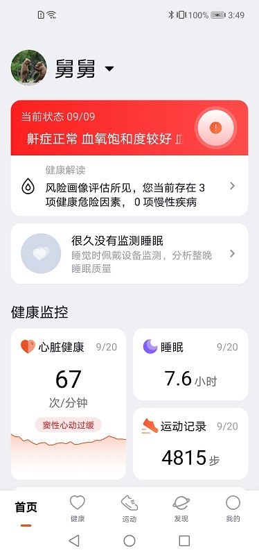 3、及时了解你与家人睡眠,运动量,心脑血管疾病风险,及其他身体健康状况,特别针对心脑血管疾病.当发现异常情况预警并提醒你与你的家人。