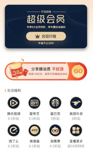 4、多种套餐,为用户提供多种折扣套餐,油费月月返还;