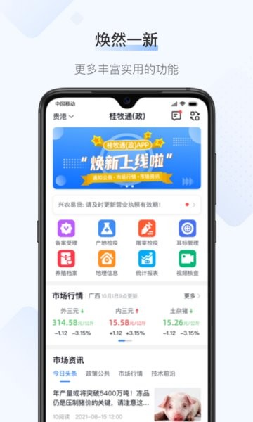桂牧通(政)APP最新版本是有着丰富的检疫和畜牧业相关服务的软件,大家可以在这里找到很多实用的养殖信息,避免大规模出现问题,让养殖业的小伙伴们规避风险,展开全面的服务和操作,快速完成自己的检疫!