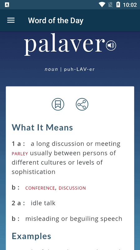 当您查找一个新单词时,您不仅仅是在单独学习该单词。Merriam-Webster 通过添加同义词和反义词将您带到下一个层次。因此,您总是会很高兴收到更多与您感兴趣的问题相关的词汇。从这里开始,您的词汇变得越来越多样化和有价值。更具体地说,如果您的移动设备未连接到互联网,您仍然可以查看它们,因为它始终在字典中可用。
