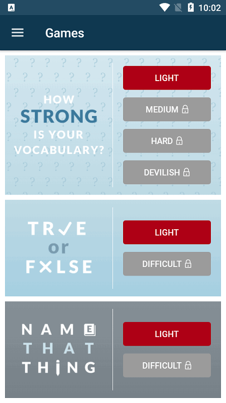 -- 新词汇构建测验:有趣、快速的测验,学习新单词或测试你的词汇