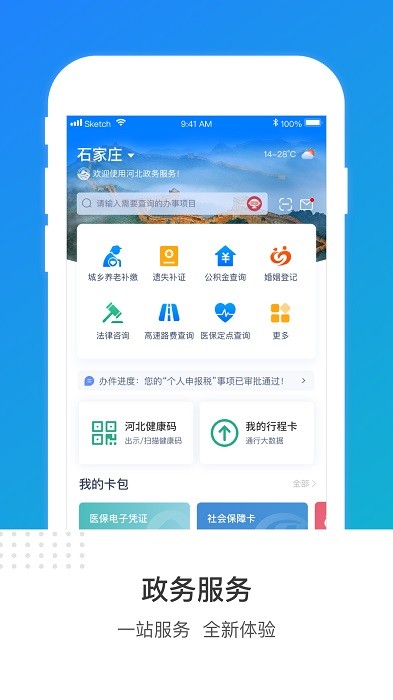河北政务服务平台app手机版客户端最新版叫做冀时办,是河北省市民使用的政务服务平台。软件整合了政务办事的所有功能,包括营业执照办理注销、公积金查询、婚姻登记、社保缴费、医保电子凭证等,凡是我市市民都可以通过app来办理政务相关事宜。