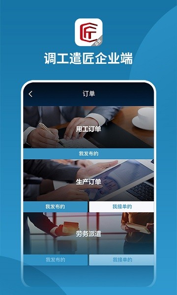 调工遣匠企业端,为企业打造专项订单管理与人才需求对接服务,在这里企业可详细编辑自己的生产及用工订单信息,便捷在线接收或发送劳务及生产需求订单信息,使用十分方便,有需要的企业用户可以下载使用!