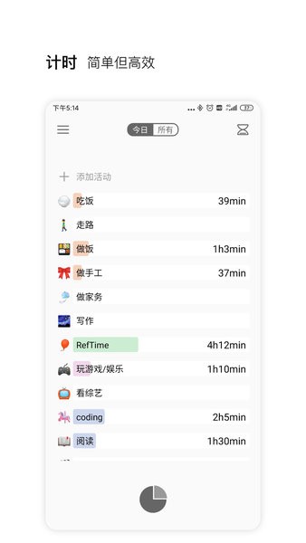 reftime软件app(时间管理)是用于记录和管理时间的工具,帮助用户合理规划时间安排。软件可以通过图表的显示来记录你花在每件事情上的时间,让你清晰了解时间都消耗在哪了,从而来科学合理的控制时间,这样才能有更充足的时间做更多的事情。