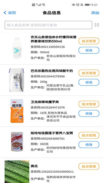 食安山东一网通APP,企业注册与工商登记系统对接,确保市场主体信息真实有效;食品信息与中国物品编码中心源数据库对接,通过扫描食品包装条形码获取食品和生产单位的信息,方便企业简便维护食品信息,进而满足食品经营业户和上游供应商对商品管理、进货查验、销售管理、订货管理、退货管理、召回管理、日常经营场所自律的上报和管理。