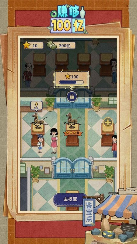 赚够100亿手游是全新制作的一款模拟经营单机商业都市小游戏,画面精致卡通,趣味十足,玩法简单易上手,不仅可以挖宝,还可以答题鉴宝,提供多种方式选择,不断升级技能,解锁更多玩法,获取更多收益,赚够100亿,实现人生逆袭!