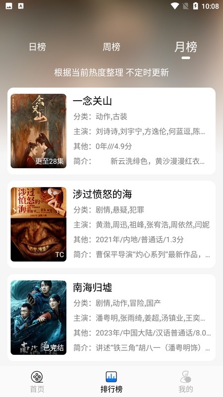 4、人气排行榜的功能,了解总榜、月榜和周榜,新鲜热门剧集一手掌握。