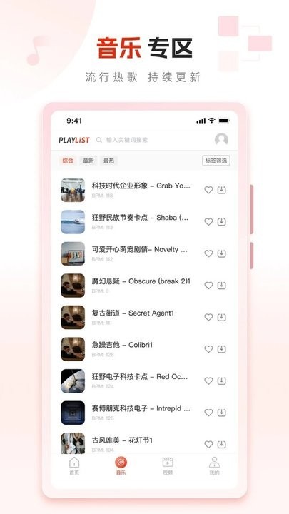PlayList是一个视频工作者素材应用,一站式解决视频工作者的素材需求,涵盖音乐、音效、视频、AI语音四个种类的内容资源。海量库存资源,覆盖多数业务场景,每次下载均提供正规授权书,极致性价比,让用户花最少的钱,下载更多资源。