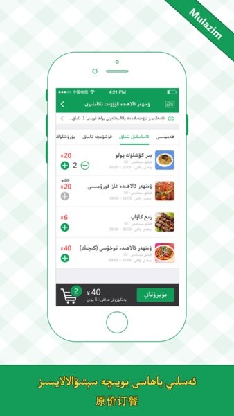 mulazim美滋来外卖app汇集了各种各样的美食,用户能够在手机上选择自己感兴趣的外卖进行订餐和支付,支持维语和汉语两种语言,能够自由切换,自动定位当前位置,显示优质的商家用户,除了美食还能选购商超用品哦!