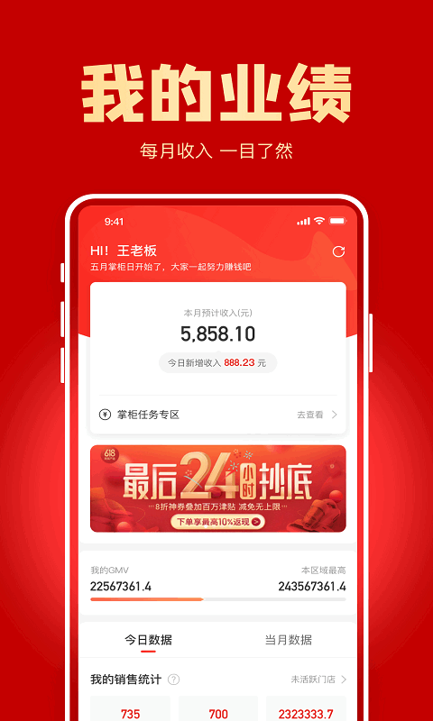 -- 任务包任务、优惠券推送、实时业绩查询帮助镇村掌柜高效完成每天工作;