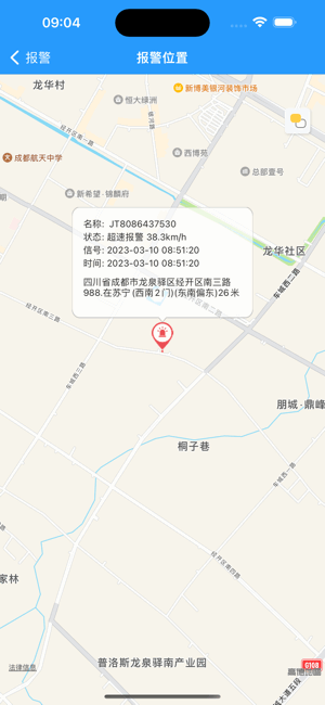 在地图上实时显示车辆位置并描绘行驶过的路线。
