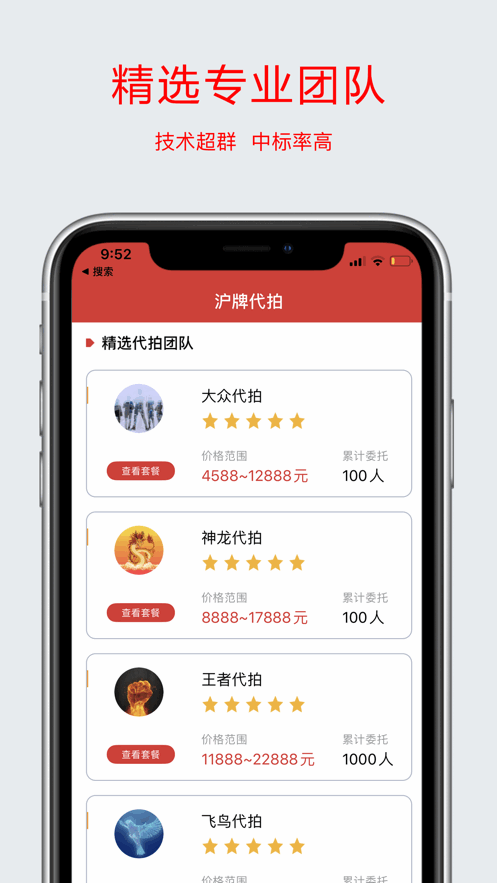 上海沪牌代拍软件最新版有众多代拍套餐可以选择,汇集了精选的代拍团队,有非常详细的价格范围信息,用户可以根据自己的实际情况来选择适合的套餐,双标书模式,成功率更高,有非常透明的代拍流程。