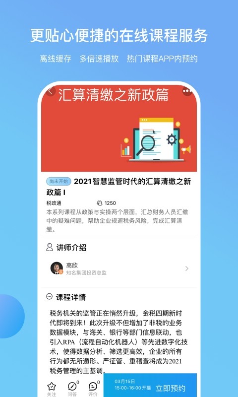 -- 更贴心便捷的宰相课程服务:离线缓存,多倍速播放,热门课程app内预约