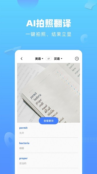 【拍照翻译】拍照或上传图片,强大的照片文字识别引擎,给予精确的拍照翻译结果。