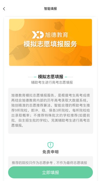 OK志愿是一款服务于高中毕业生的高考志愿智能填报平台,是旭德教育结合多年线下1对1高考志愿填报经验,结合高中生特点、大学、专业、地域、行业等综合因素,运用科学精准的大数据算法,倾力打造的一款高考志愿填报辅助系统,其中涵盖了智能志愿填报、院校专业数据查询、院校专业详尽介绍、高中生兴趣性格能力测评四大核心功能,从多个角度完美解决高考志愿填报问题,是高考志愿填报的工具。