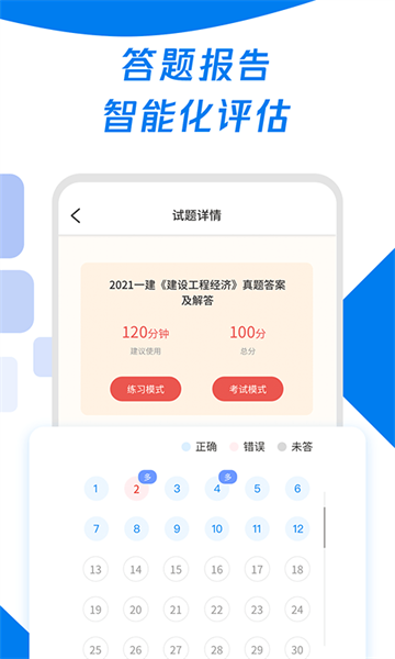 对每一次答题进行计时和分数的评估,更清晰直观的看到自己正确、错误、未答的题目,方便错题集中整理和改进。