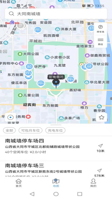 本应用为一款方便大家出行停车的APP,覆盖大同市公共区域和商圈,交通出行停车时可以在APP里边查找附近的停车场和车位情况,内置地图中显示停车场位置,通过地图可以准确导航到停车场入口处,并可以预定想要停车的停车场车位,也可以针对某个停车场进行包月停车,停车场主要包括桥下停车场、路侧停车位和一些商圈的停车场。