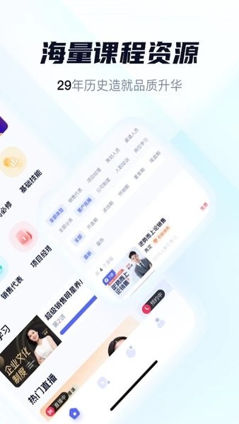 App特色鲜明,比如海量课程、理论与实操结合、专业的直播课程等,尤其是针对销售岗位的实际问题提供解决方案。软件还支持文档下载、审批等功能,方便知识管理。