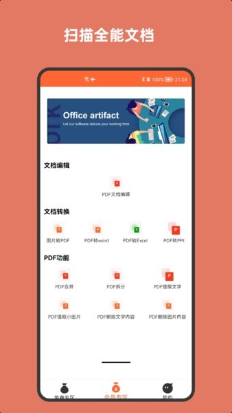 扫描全能文档是强大的文档扫描器。支持提取文字。带ocr文字转换成pdf文档!文档信息全面又实用,格式有保障!