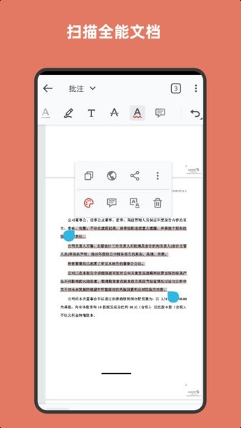 扫描全能文档app让文档上面的信息可以用最快的速度在手机上展示出来,界面上的信息都是非常直观的,不仅可以在扫描结果上直接编辑操作,也能保存下来再次修改!
