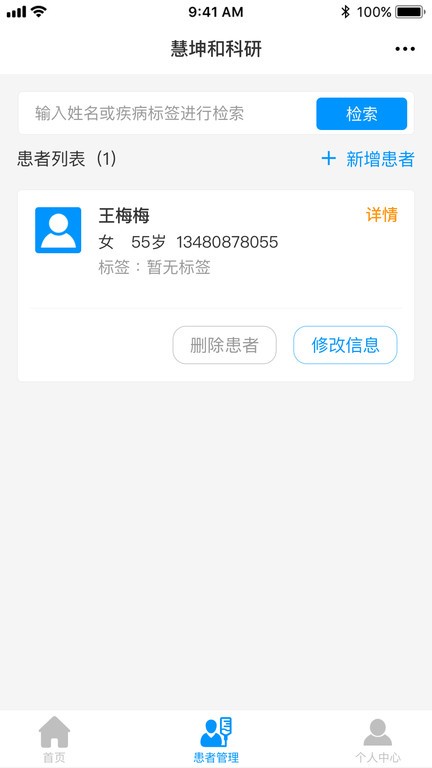 临床科研app最新版为医生用户提供了便捷的科研管理,医生用户能够在手机上检索和管理患者,便捷的添加、删除和修改最新的信息,可以形成自己的病历夹,支持进行随访记录,还可以在线填写表单,医生和患者均能填写!
