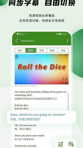 高清视频全屏播放,还有双语切换,还可以和朋友分享视频