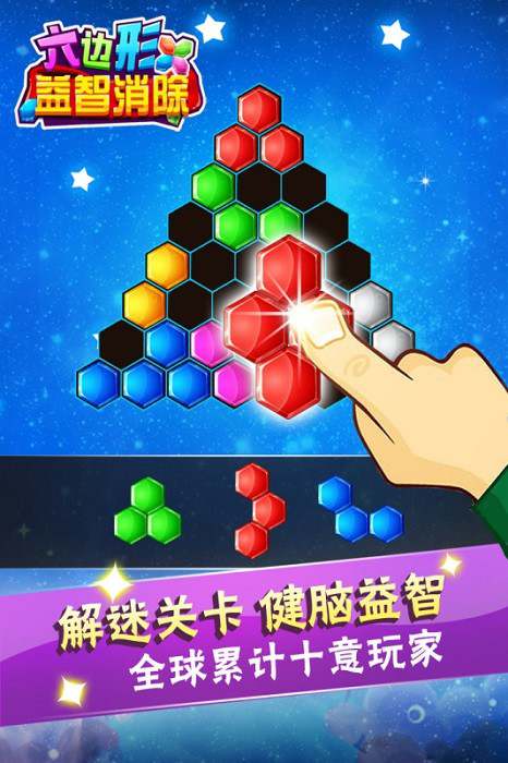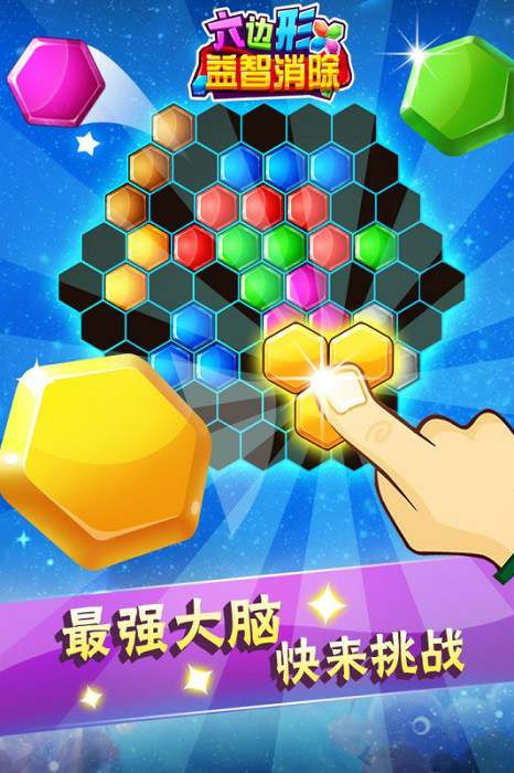 六边形益智消除游戏是一款拼图游戏,游戏氛围多种不同的难度模式,适合全年龄段的玩家!创造并消除三个方向的线条并通过连击消除来获得更高的分数。没有时间限制!游戏画面清新亮丽,游戏中的各种动作效果也是非常的好。