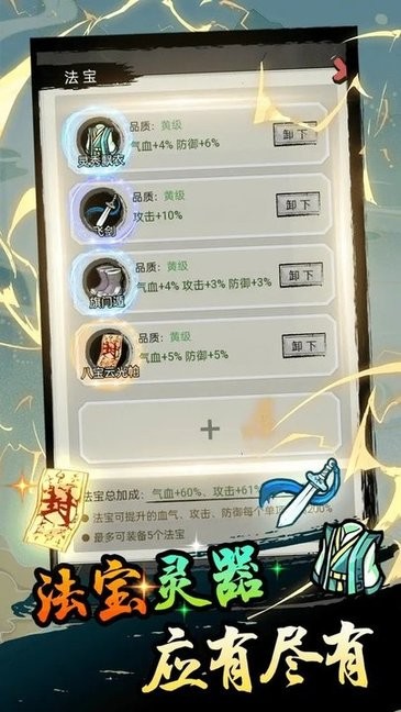 除了多种属性外,功法、丹药、法宝、稀奇古怪的道具,都是必不可少的。