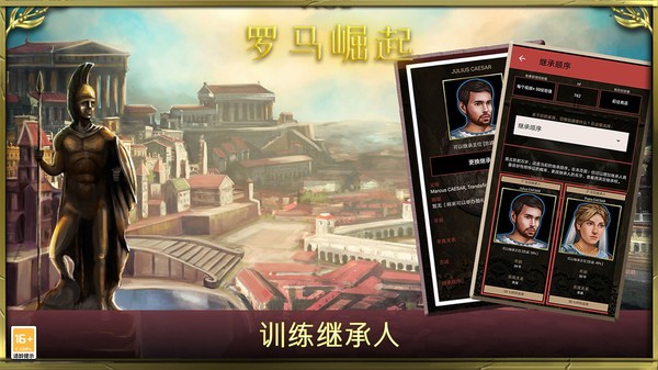 这是一个以罗马发展史为背景的回合制征服类和策略类游戏。世界在等待着您,罗马等待着您。将罗马从意大利半岛中心的一个小城邦发展成为一个横跨亚非欧大陆伟大文明。带领军团与其它向罗马帝国发动战争的王国或文明展开史诗级战斗。升级帝国防御,以抵御敌对文明的武士攻击,敌对文明的武士会围攻罗马,企图推翻您的王国。历经重重历史挑战(帝国分裂致使罗马政权动摇):阴谋与背叛、战争和蛮夷入侵、暴动和政变。