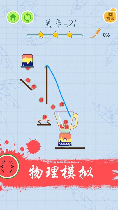 只要画出的线是正确的那么水果就能顺利的到达榨汁机内。