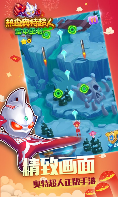 游戏里奥特超人施展神奇的力量,勇往直前突破难关。一场视觉盛宴就在眼前,不要停止攻击!快点把小怪物们都赶跑吧!刺激的弹幕对决、酷炫强力的技能、实用无敌的道具,还等什么,快来和奥特超人一起保卫地球,体验刺激爽快的弹幕射击!