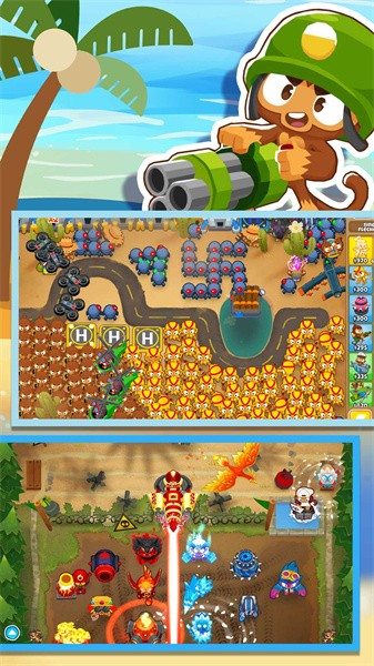 游戏里的角色和怪物都很独特,音乐和音效也挺轻松,让人感觉放松。地图设计得很丰富,每次玩都有新鲜感。打败的气球越多,得分越高,还能解锁更多武器和道具,闯关成就感满满。