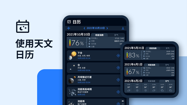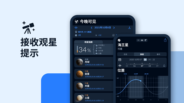 在任何时间和日期设置天文事件提醒,以免错过您感兴趣的日食、满月,恒星与行星配置等。