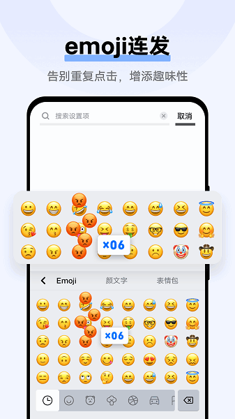 -- emoji连发:长按emoji可连发上屏,告别重复点击
