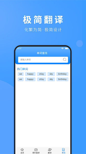 可以免费拍照翻译成多种语言的翻译软件,它不仅可以翻译单词、翻译英语、拍照翻译、语音翻译、文字翻译、图片翻译、英语翻译、日语翻译、韩语翻译。它还可以帮助学习英语、法语、德语、韩语、英语词典、背单词、日语学习、韩语学习。