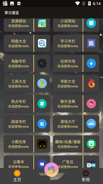 聚合魔盒手机2.0最新版聚合了各种各样的资源工具,体积小巧,内容丰富,包括小说、影视、工具、动漫、记事本、游戏、学习等应用资源,分类清晰明了,不同影视播放器随你选择,在线体验,流畅播放,轻松搜索,免费使用,好用实用,满足个性化需求!