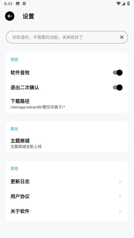 作为一个科技爱好者,我最近发现了一款超级实用的应用软件——酷空间盒子。这个app功能强大,资源丰富,简直就是万能工具箱!里面涵盖各种小工具和资源,比如影视、游戏、音乐、辅助工具等等,想什么都有,而且还能随时更新,完全不用愁找不到东西用。