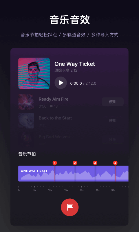 在音乐轨道中支持节拍标记,轻松卡点,剪出视频仪式节奏感。