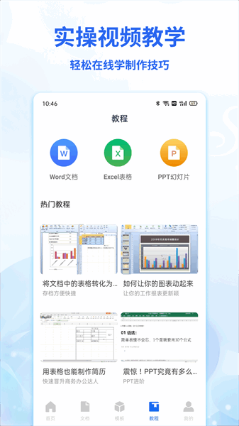 专为手机文档打造的效率办公软件,持在线对文档进行编辑,精心编排,视频教程,图文并貌,初级到高级内容全面,方便使用,多看多练,还有各种建立模板供参考,无需联网,所有内容离线保存,即学即用!