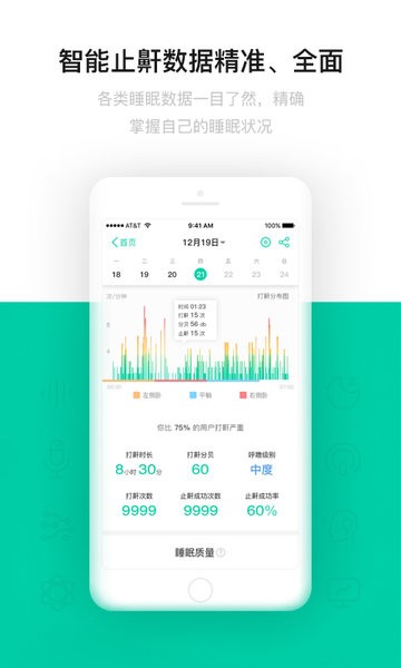 5、让用户知道自己的鼾声严重程度,您才能够更懂自己的睡眠情况;