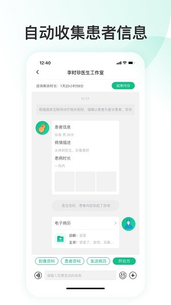 【问诊方式】医生可以根据自己的实际情况,开通图文问诊、电话问诊、视频问诊服务,自由设置,多点执业更加方便快捷。