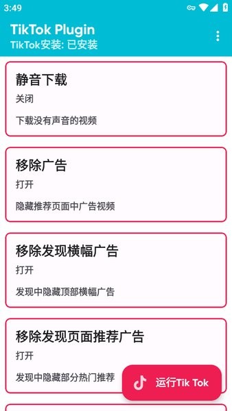 支持去除tiktok中的广告,刷视频不被广告打扰;