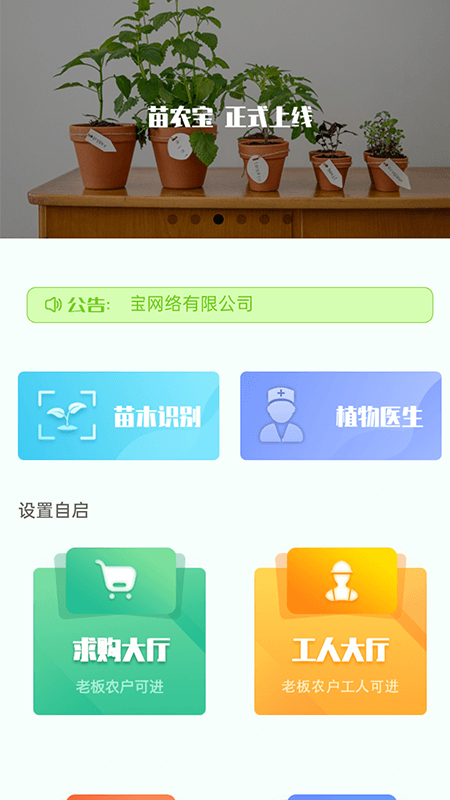 苗农宝app最新版软件主要提供了苗木的交易服务,能够在这里发布求购信息,也可以进行苗木的采购,支持拍照和上传图片来智能识别苗木,还可以在植物医生里面识别农作物的病虫害,找到治疗的方案,苗农、工人、司机等用户均可使用!